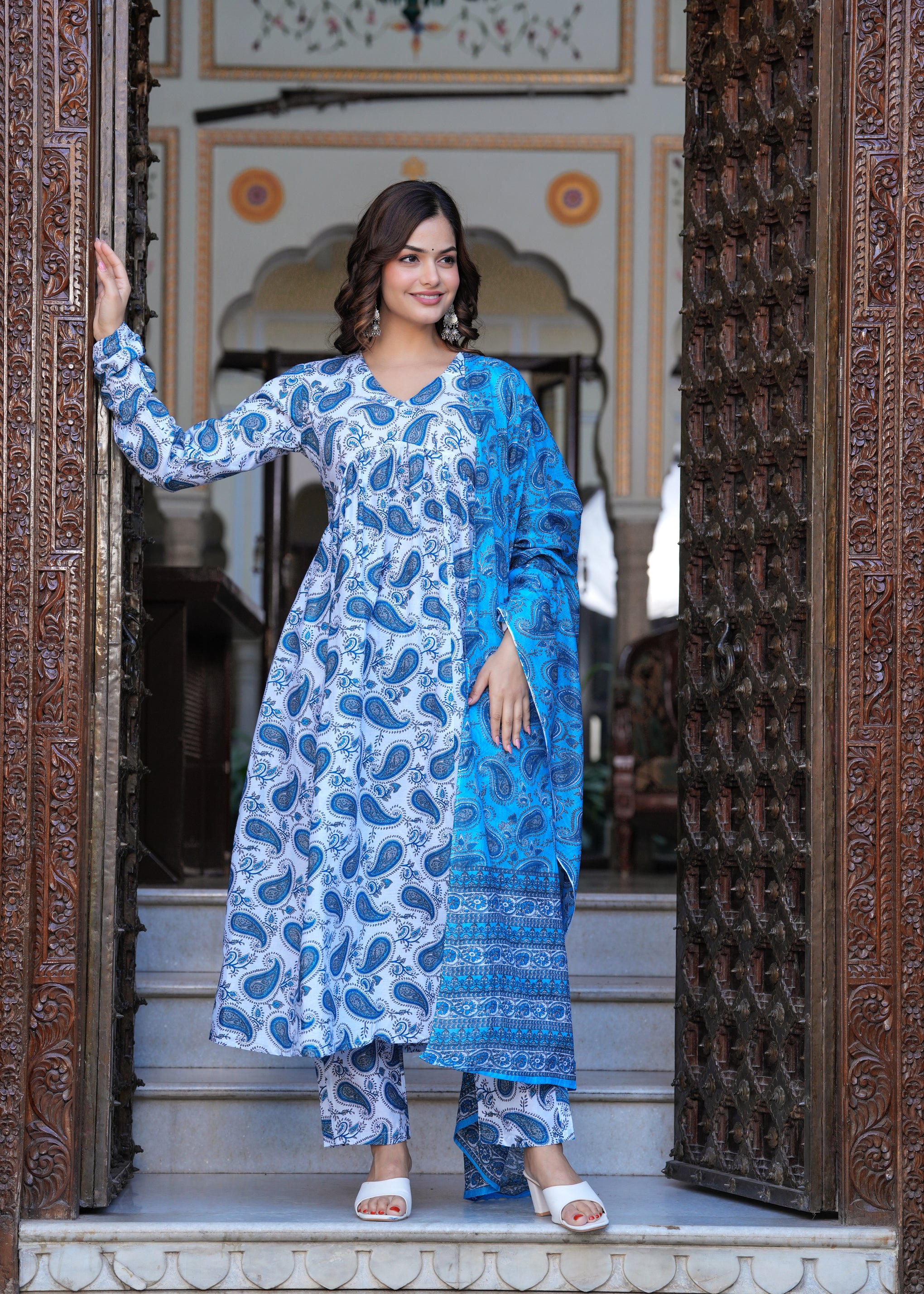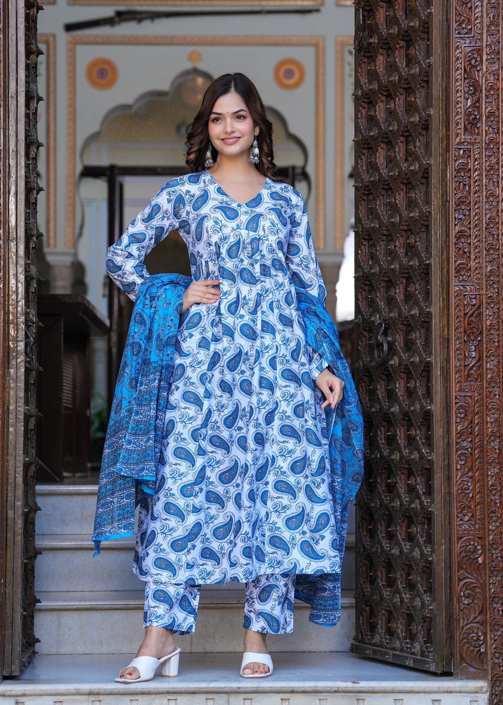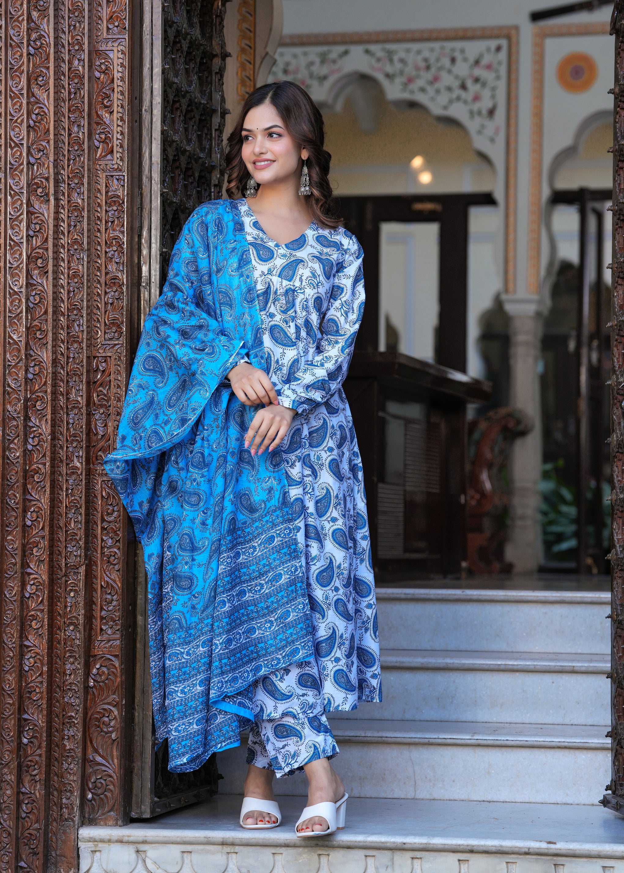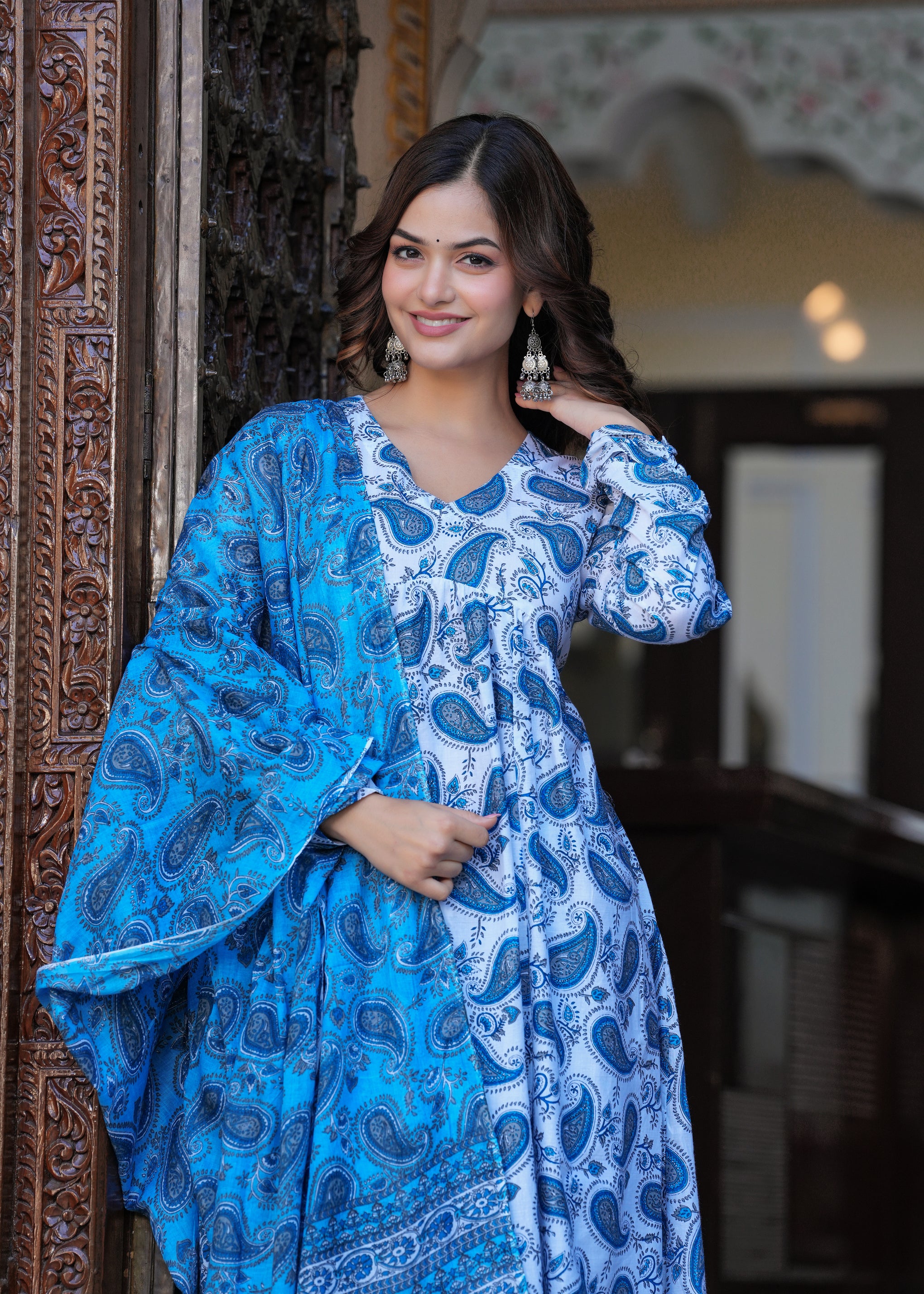 Blue Cotton Anarkali Kurta Set – Classic & Comfortable Ethnic Wear