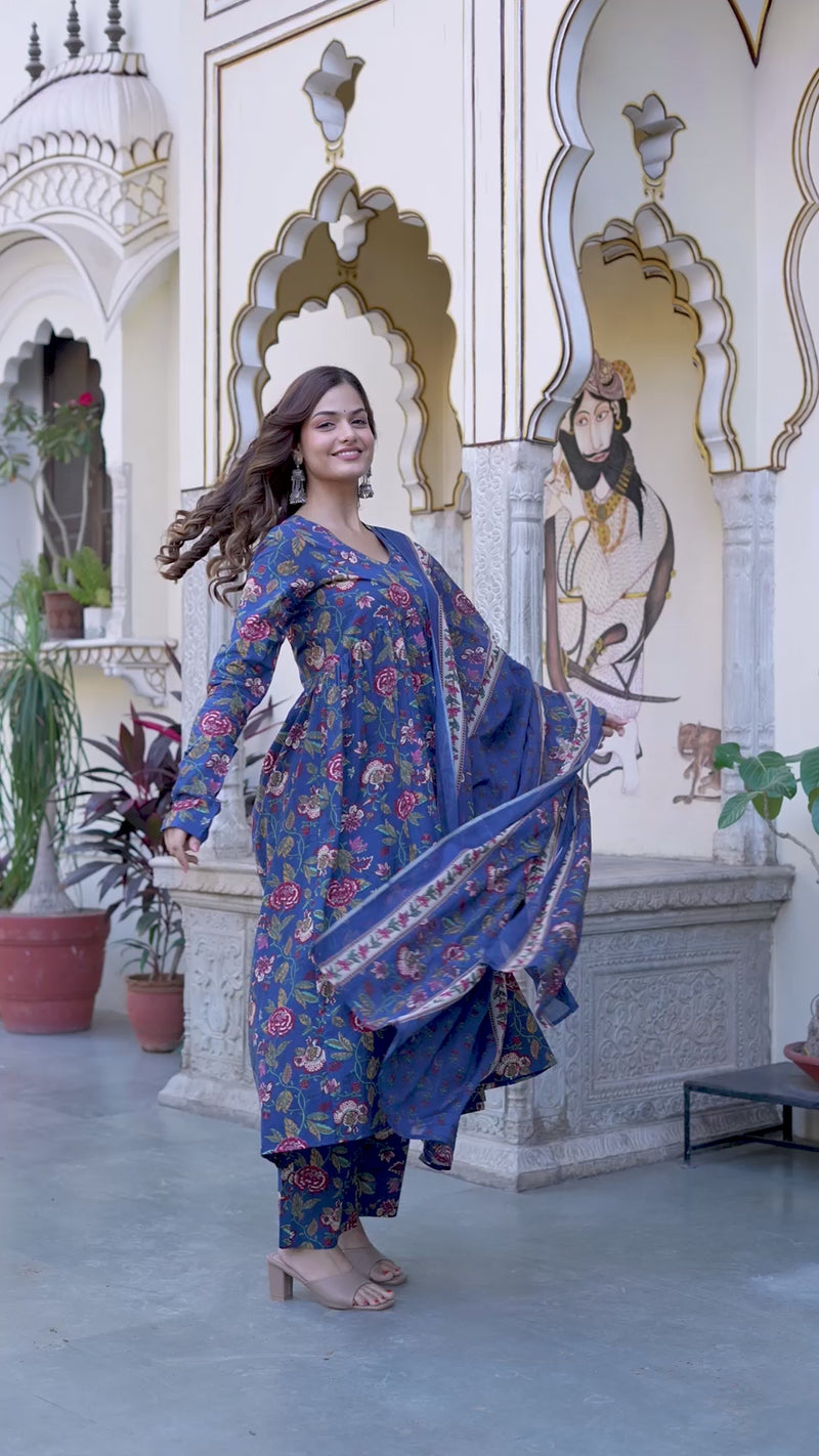 Women Ethnic Motifs Printed Tiered Anarkali Kurta Set