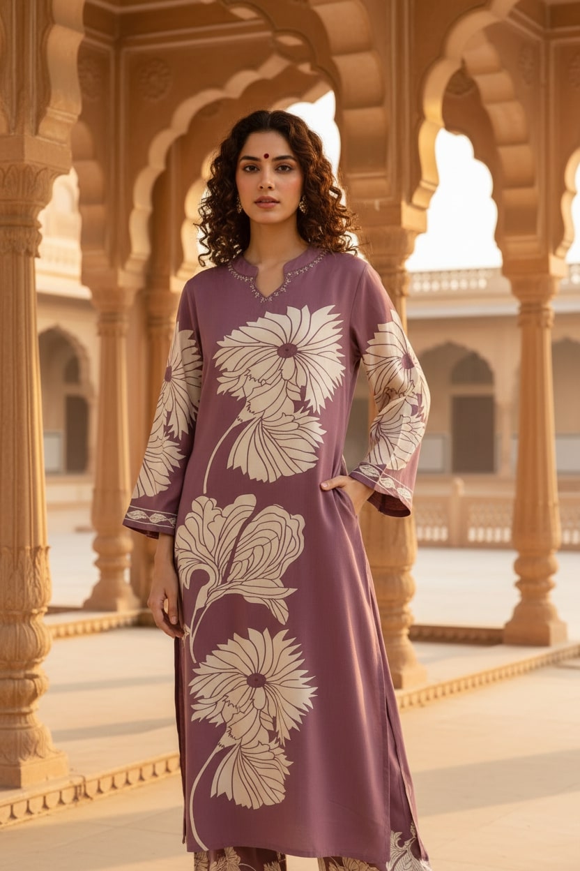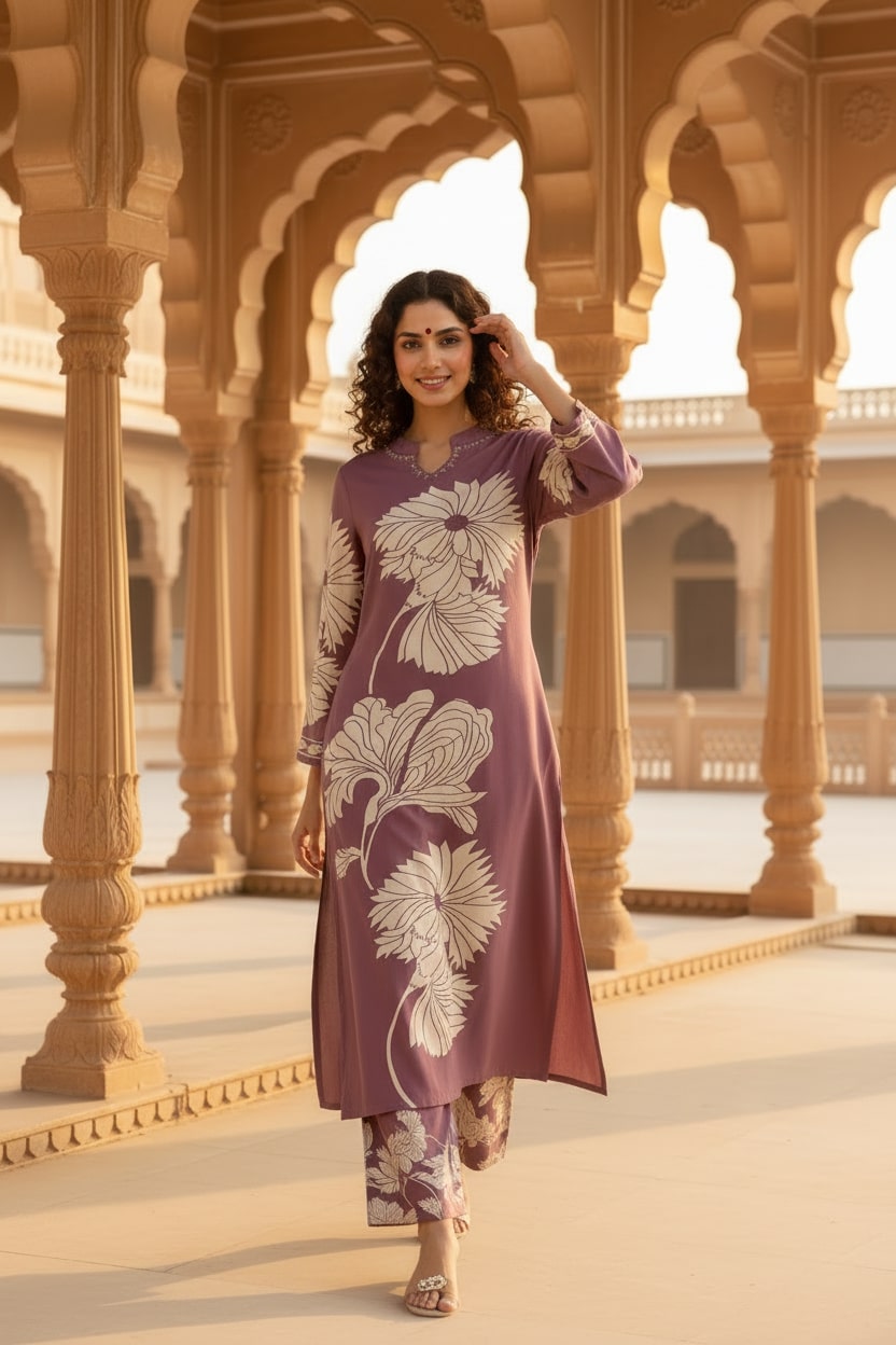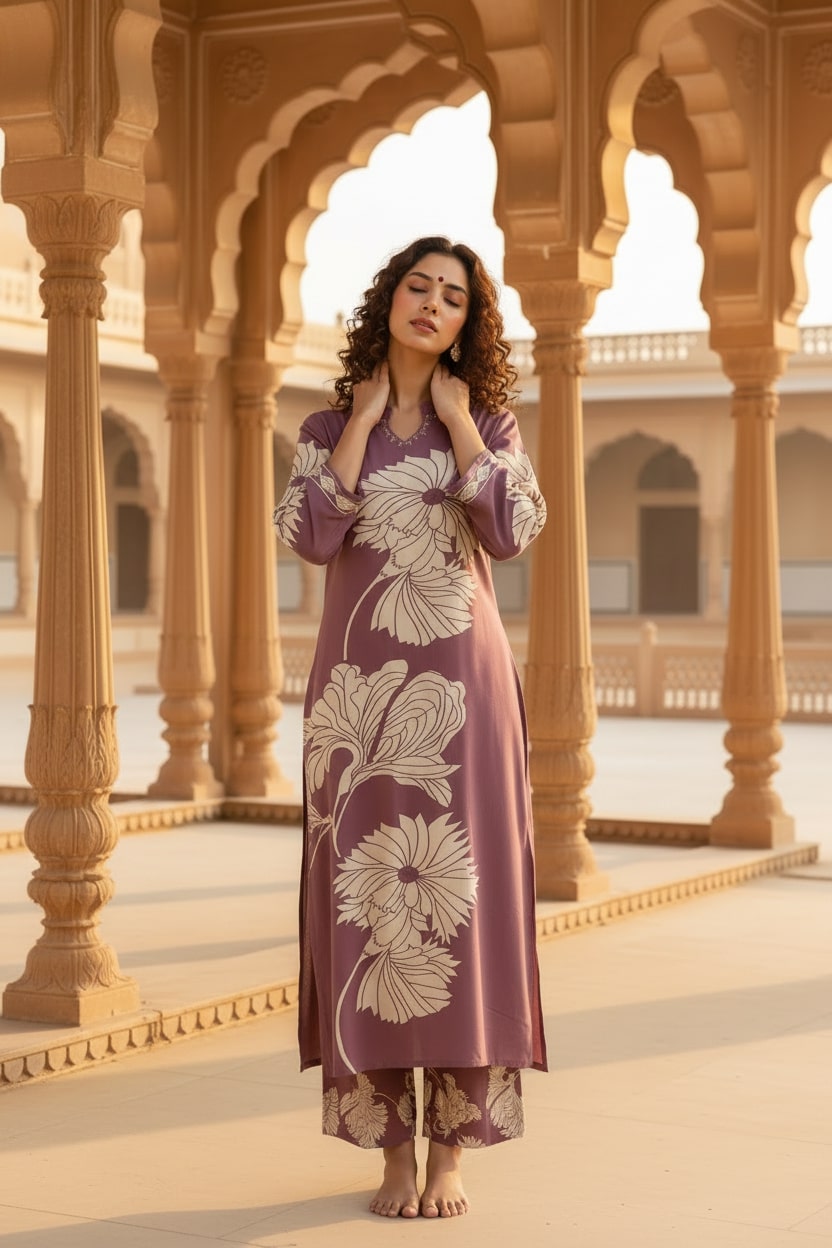 Rich Grape Purple Cotton Kurta Set with Refined Comfort