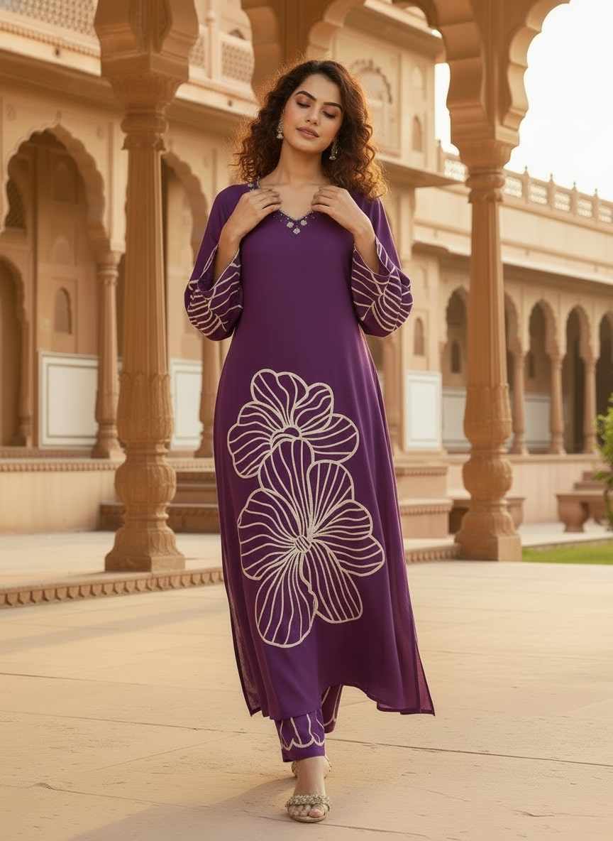 The deep purple shade adds a royal and stylish appeal, making this kurta set perfect for daily wear, office wear, and casual outings.
