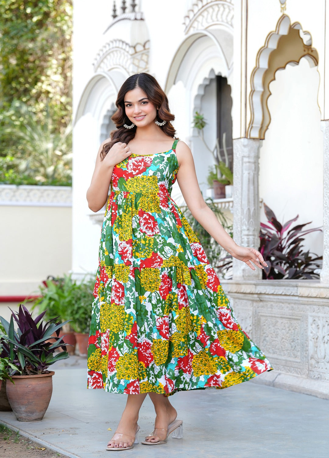 Add a vibrant touch to your wardrobe with this elegant rayon dress designed for comfort and effortless style. Featuring a flattering fit & flare silhouette, this dress offers a graceful flow that enhances your look while allowing easy movement. Crafted from soft and breathable rayon fabric, it is ideal for all-day wear. The sleeveless design and modern square neckline add a contemporary finish, making it perfect for casual outings, parties, and festive occasions. A versatile piece that blends comfort with stylish appeal.